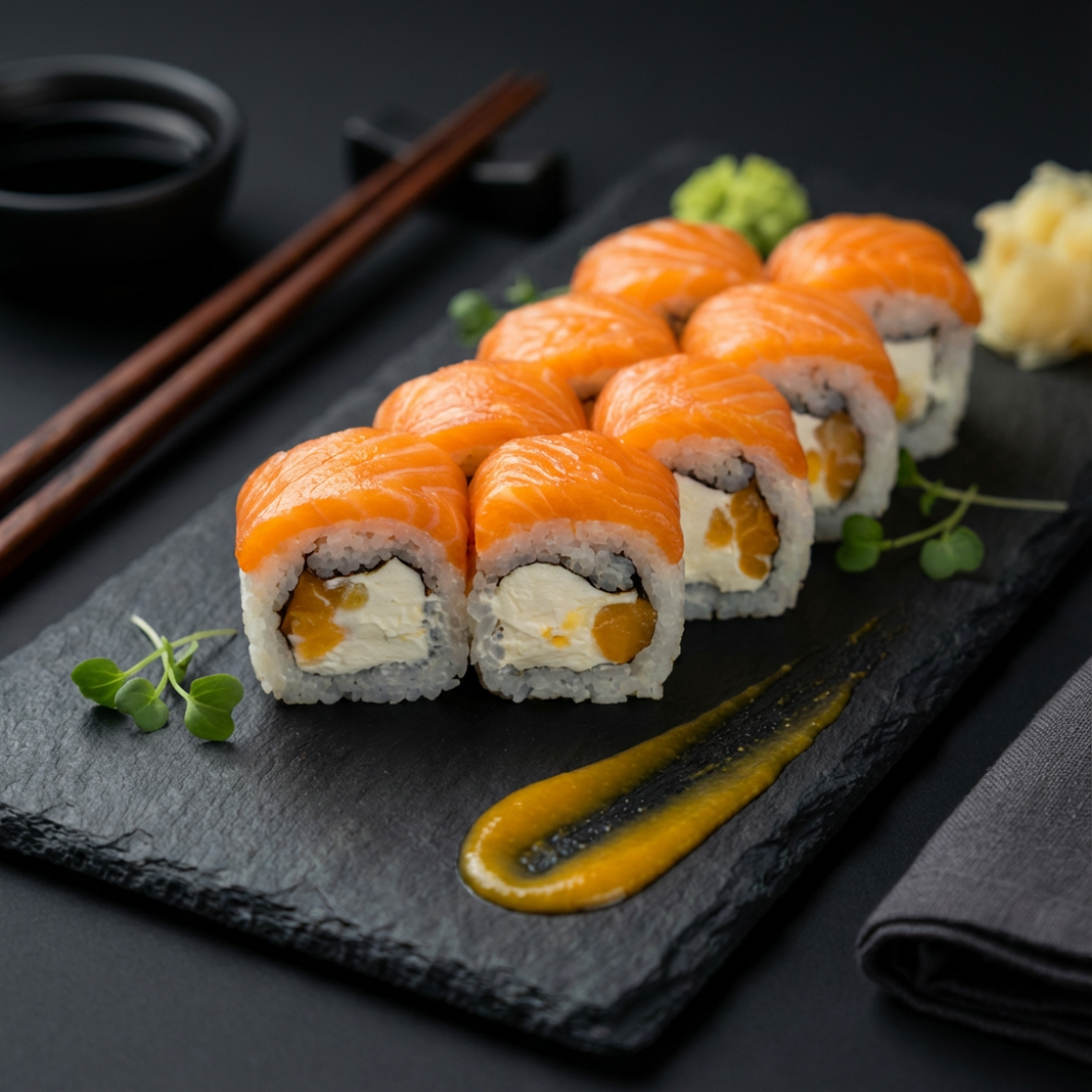 Нежный лосось в сочетании со сливочным сыром и мандарином